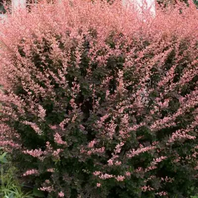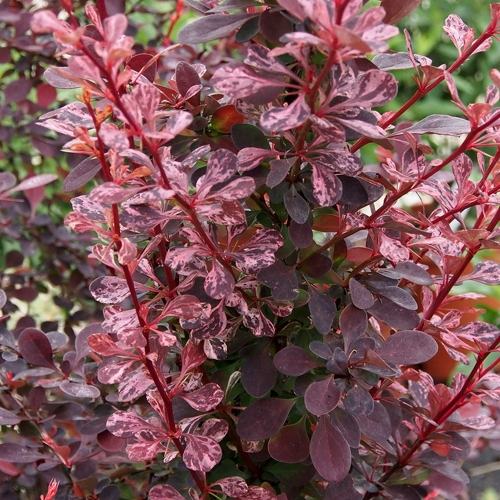 Барбарис Роуз Глоу – самый красивый и уникальный барбарис. Сорт каждый сезон меняет внешний вид. Весной первые листья барбариса темно-пурпурные, за ними следует новый рост – нежно-розовый, с пятнами пурпурного цвета. Сочетание выглядит привлекательно. В течение лета новые побеги сохраняют комбинацию фиолетового и розового. Осенью растение становится красно-фиолетовым. После опадания листвы показываются гроздья ярко-красных ягод, которые гарантированно будут украшением зимнего сада.
