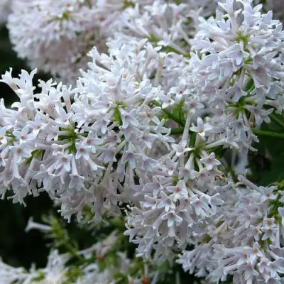Цветки этого сорта очень изящные, имеют белый или нежно-сиреневый оттенок, они длиннее и тоньше, чем у традиционных сиреней. Бутоны окрашены в нежно-сиреневые или бело-розовые тона, собираются в легкие и воздушные соцветия длиной до 30 см. Этот вид кустарника начинает цвести в мае и радует глаз до июня, наполняя сад изысканным сладким ароматом, который невозможно не заметить.