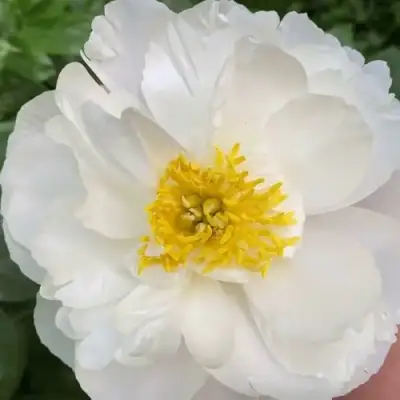 Пион "Дублин" может похвастать крупными немахровыми анемоновидными цветами. Они имеют светлую, белую окраску с насыщенным жёлтым центром, что делает их двухцветными и привлекающими внимание. Широкие лепестки и золотистые тычинки добавляют им изысканности. Цветы источают слабый, но приятный аромат, который создаст уютную атмосферу в вашем саду.