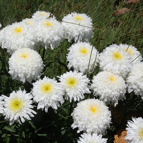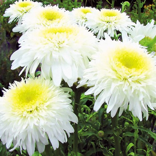 Махровый нивяник Фиона Гогхилл — находка для тех, кто устал от скучных форм и ищет в цветах не только красоту, но и выразительность. Этот сорт удивляет с первого взгляда: крупные, густомахровые соцветия словно вылеплены вручную — лепестки слегка подкручены, многослойные, с мягким кремово-белым отливом. Никаких агрессивных контрастов — только благородный баланс фактуры и нежности.